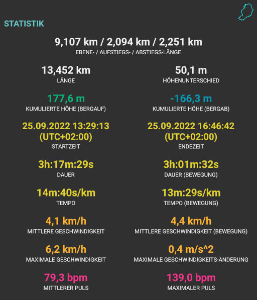Kartendarstellung "Google Maps" und Statistik über App GPX-Viewer