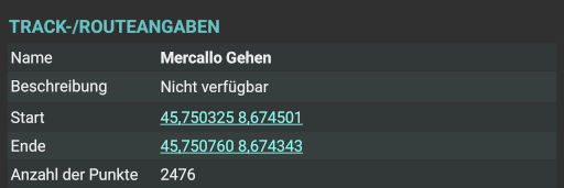 Starten würde ich entgegen der GPX Datei am Parkplatz direkt an der Ampel, wo die "Via per Vergiate" die "Via Bagaglio" in Mercallo trifft.
