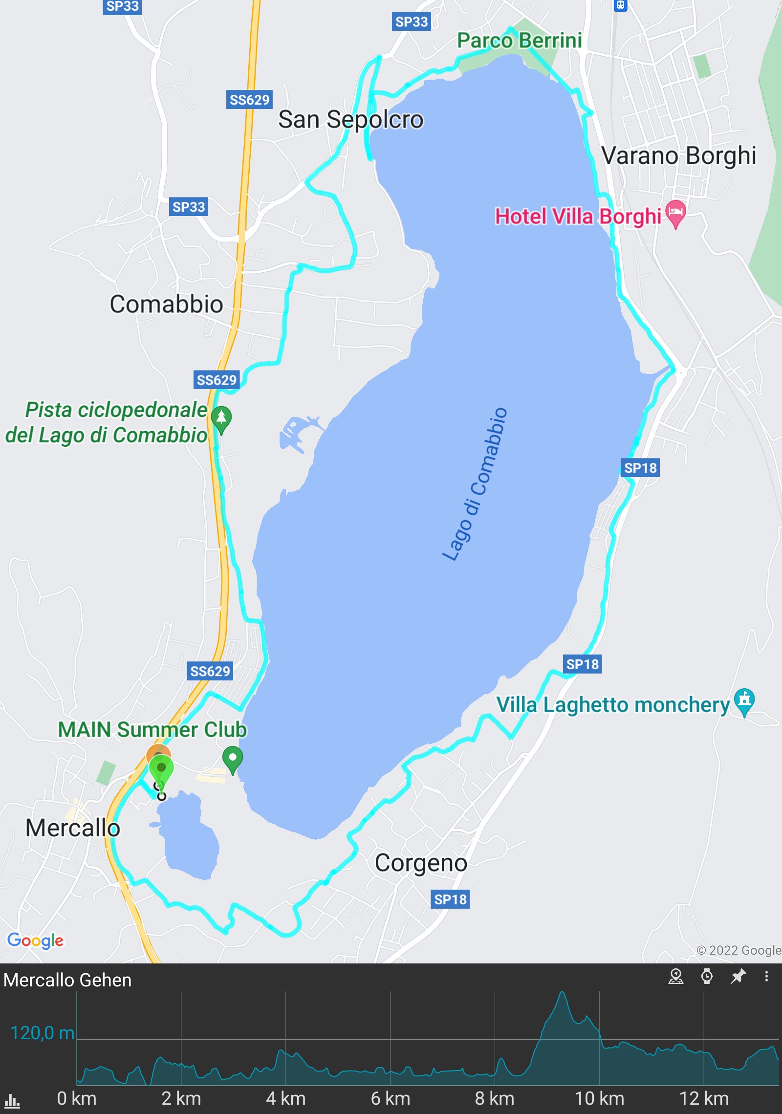Warnung nur an einer Stelle! Am Nord-West-Teil des Rundweges bei "San Sepolcro" ist schon seit längerer Zeit der Weg am See gesperrt und ein Ausweichen oberhalb ist notwendig.