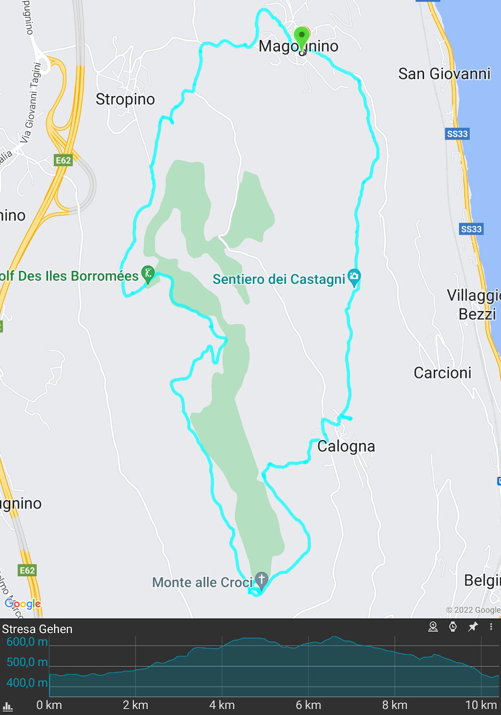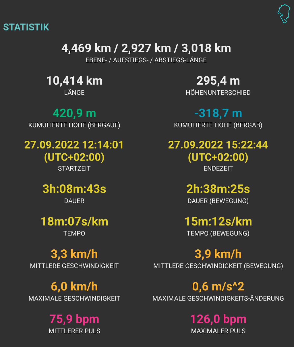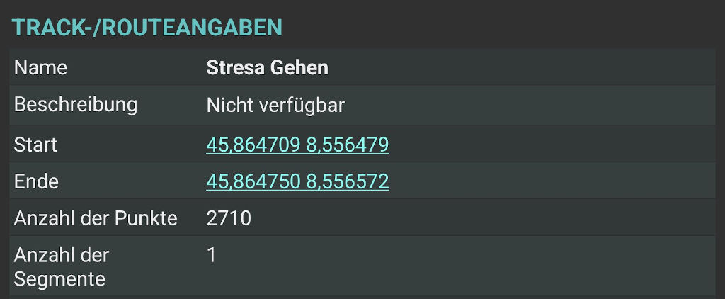 Kartendarstellung "Google Maps" und Statistik über App GPX-Viewer