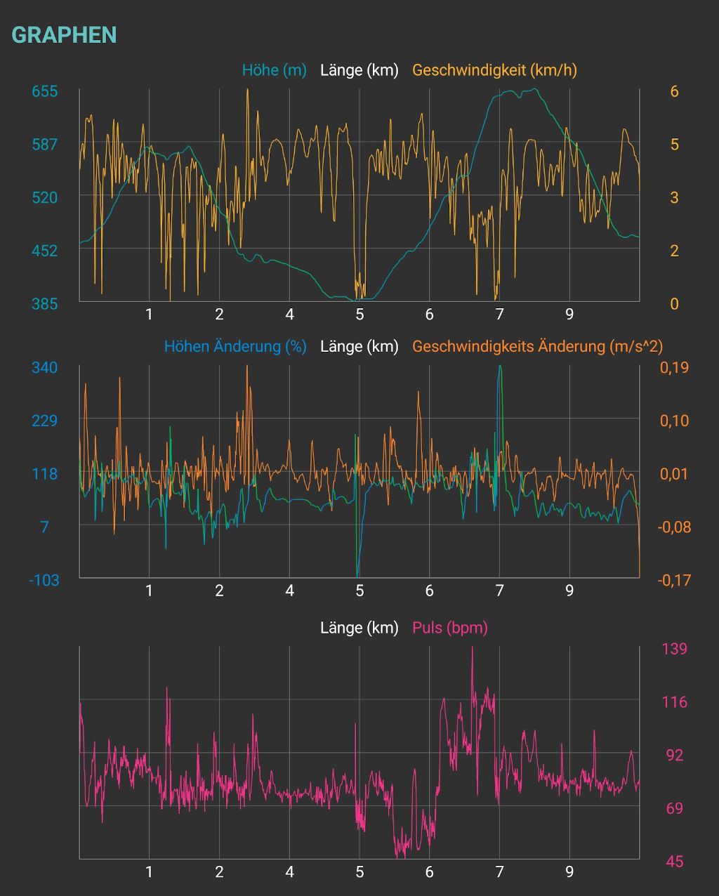Kartendarstellung "Google Maps" und Statistik über App GPX-Viewer