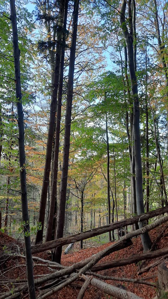 Nach dem Feld geht es wieder in den Wald und am Waldrand zurück.