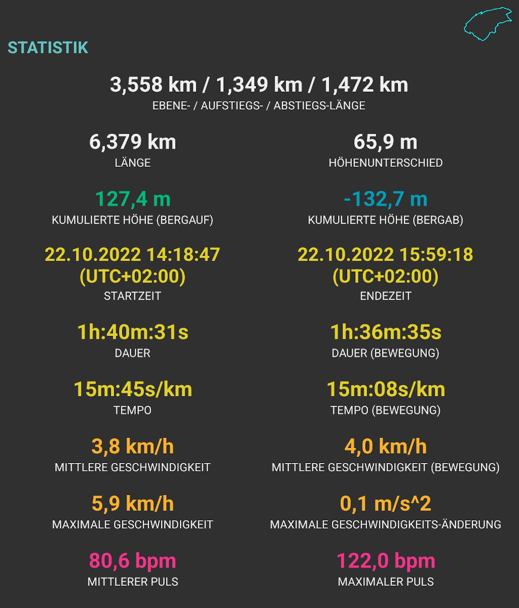 Schöne abwechsungsreiche Runde, gemessen ca. 6,4 Kilometer.