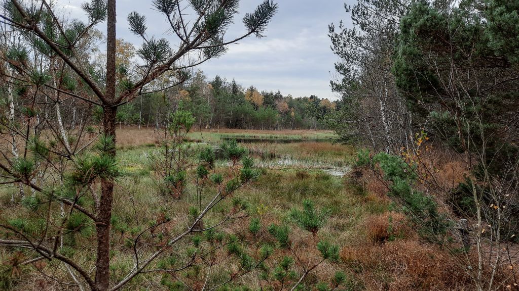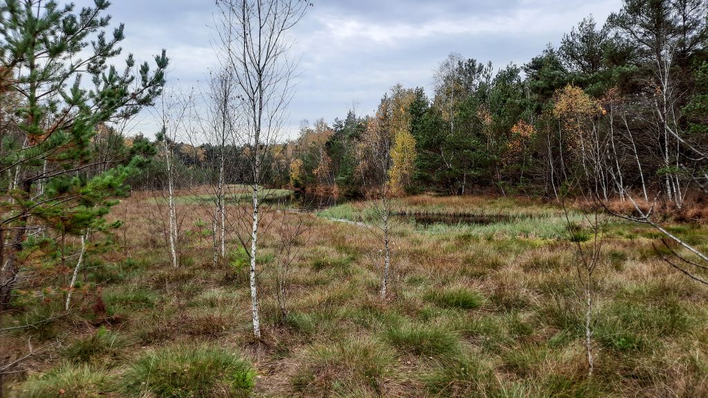 Nachdem der Ort verlassen wurde ging es gleich in den Wald ins Moor. Ein sehr schöner Weg mit späteren Blick aufs Moor.